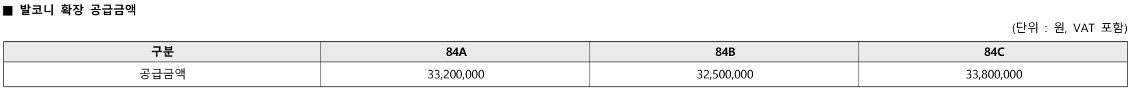 - 84A타입(196세대) : 5.87억