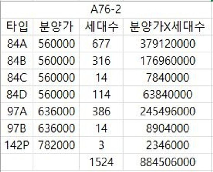 - 84A타입(677세대) : 미정