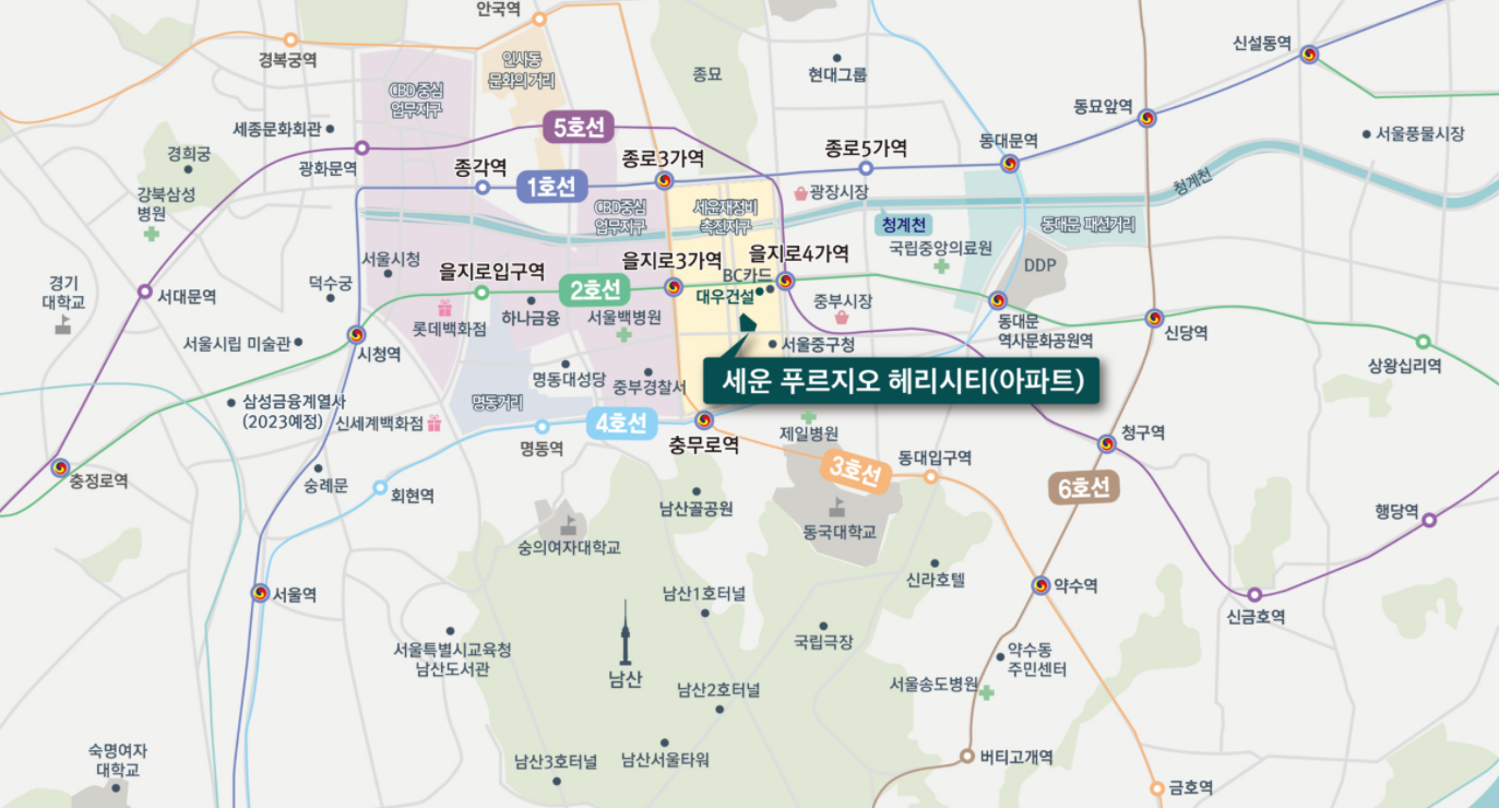 세운 푸르지오 헤리시티는 서울의 중심에 분양했고, 세운이라는 이름으로 많은 분들의 가슴을 설레게 했지만, 초소형 평형대라 아쉬움이 있던 곳입니다. 1,2,3,4,5호선을 한번에 이용할 수 있는 서울의 중심 of 중심인 이 단지는 2023년 1월 준공되었는데요. 다시 시세 체크해봅니다.