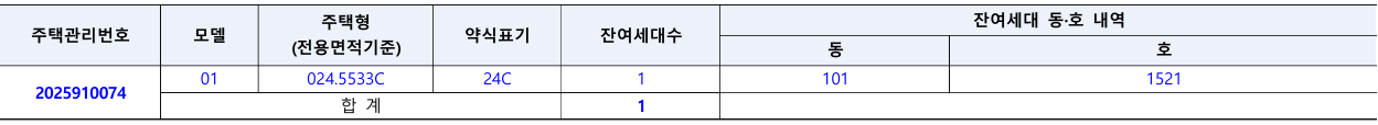 * 참고(2024년 6월, 3차 무순위청약) : 1세대