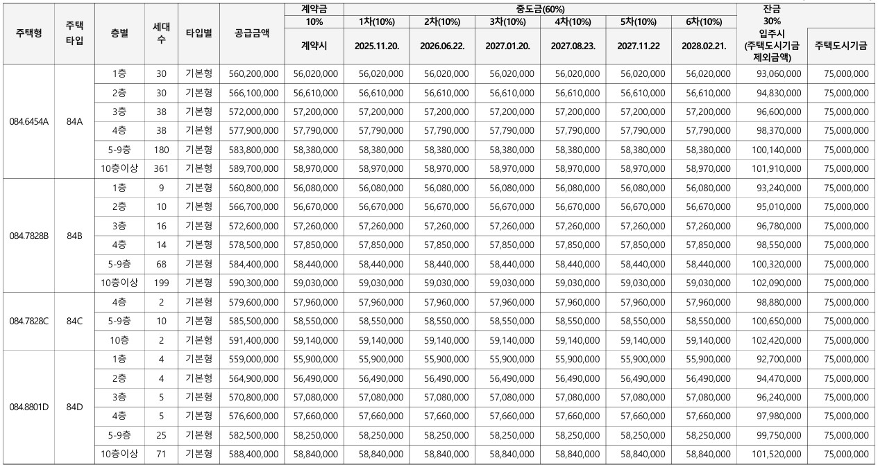 - 동탄 포레파크 자연앤푸르지오 84㎡ 분양가 : 5.91억