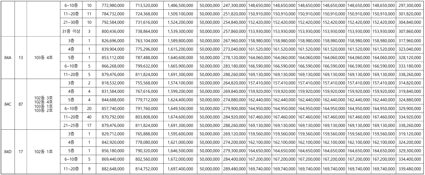 - 리버센트 푸르지오 위브 84㎡ 분양가 : 16.97억(20층)