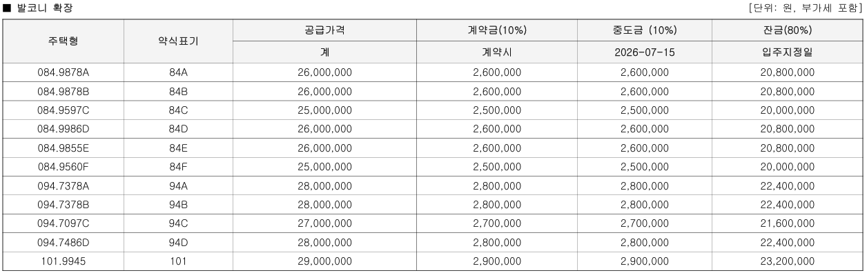 - 84D타입(216세대) : 5.03억