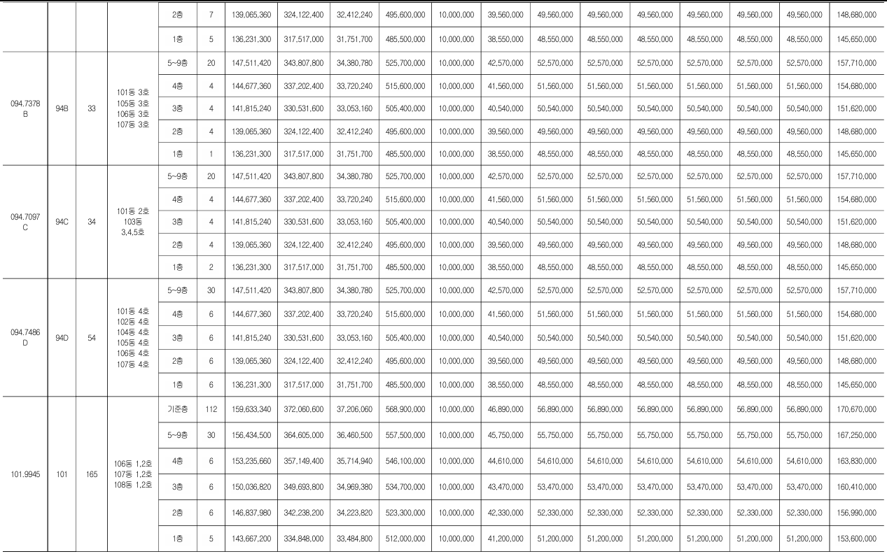 - 94D타입(54세대) : 5.25억