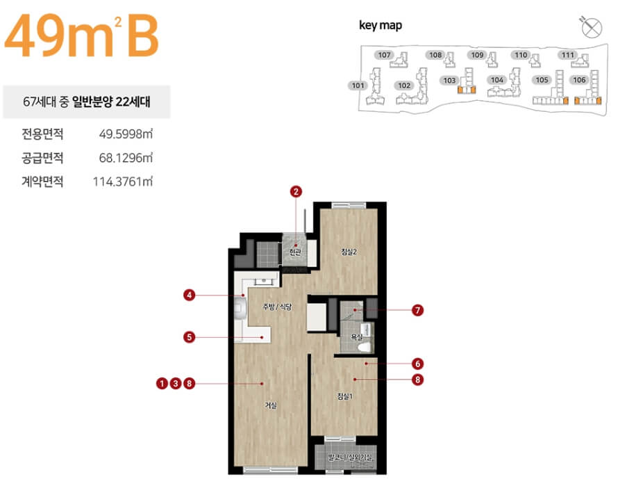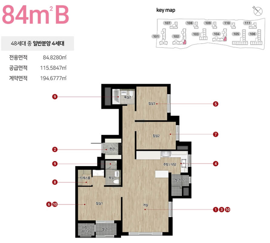 평면은 59A/B, 84C 정도가 인기많은 4BAY 판상형이고, 세대수도 적습니다. 당첨을 위해서는 오히려 피해야할 타입입니다. 마지막으로 추첨제 물량을 정리합니다. 1주택자분들이 지원할 수 있는 타입은 44A, 49A/B, 84A, 총 4가지 타입입니다. 오늘도 부리남이었습니다.