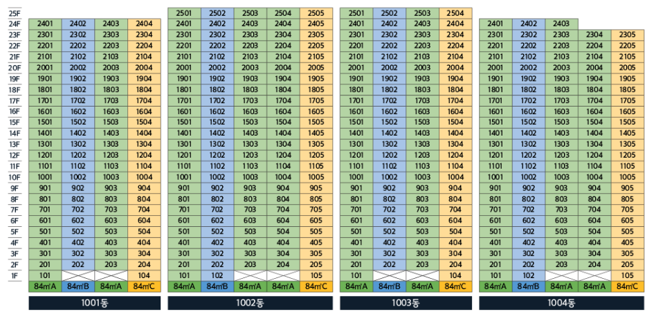 최초 분양당시 84A 타입의 일부세대가 현관전면과 엘레베이터 출입구가 마주 보고 있어 프라이버시 간섭이 생길 수 있다는 이슈가 있었는데요. 1002동(702동)과 1004동(704동) 3호라인입니다. 하지만, 4BAY+판상형+남서향으로 장점이 단점을 충분히 넘어섭니다.
