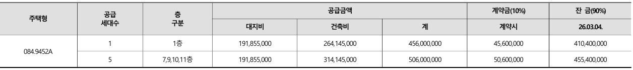 - 84A타입(2세대) : 5.06억(10층)