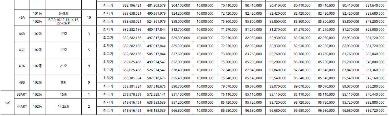 - 44A타입(101세대) : 8.19억