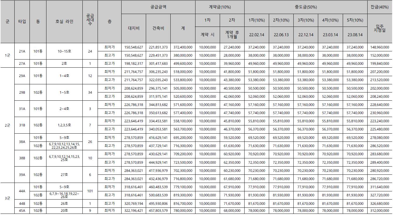 - 21A타입(24세대) : 3.80억