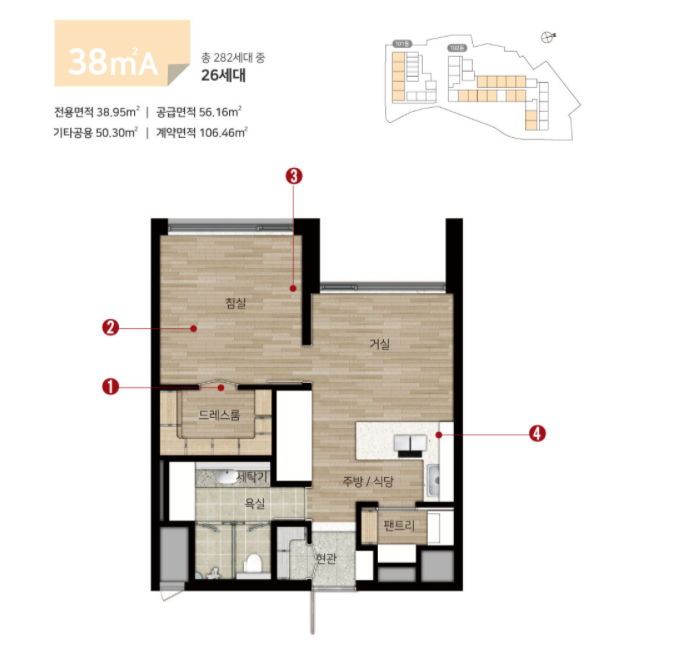 - 38A타입(26세대) : 7.16억