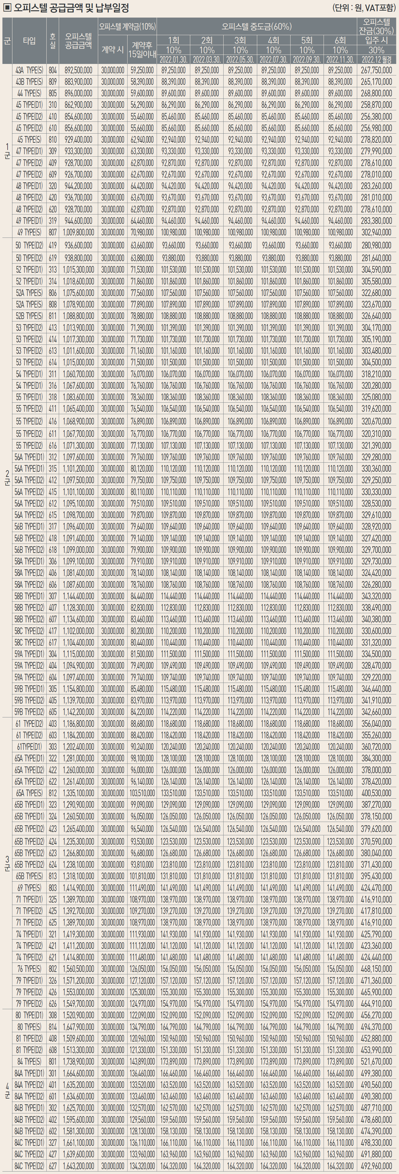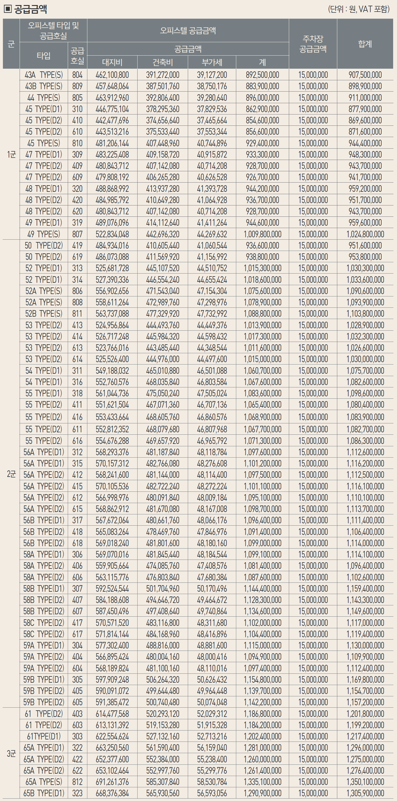 - 오피스텔뿐만 아니라 주차장도 함께 공급되는 것이 특징입니다. 윗 금액은 오피스텔과 주차장 분양가의 합입니다. 자세한 사항은 아래를 참고해주세요.