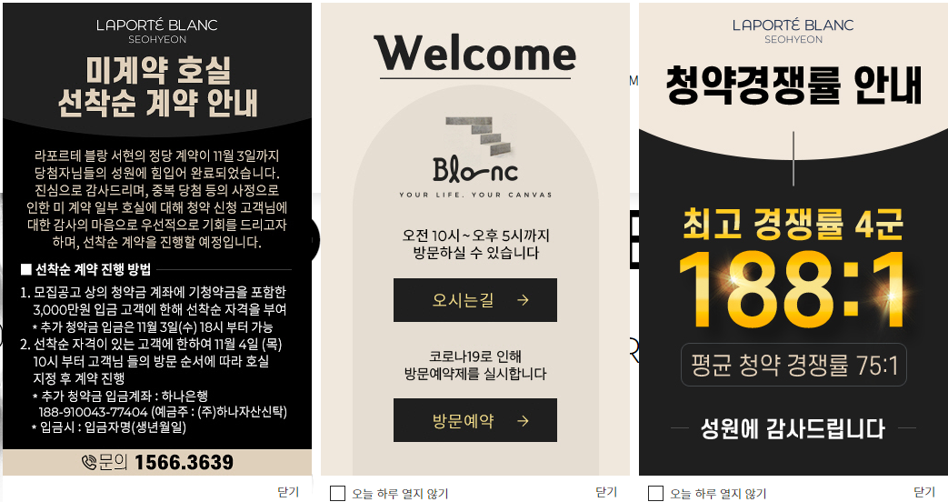 - 라포르테 블랑 서현 모델하우스 방문 순서에 따라 선착순 계약