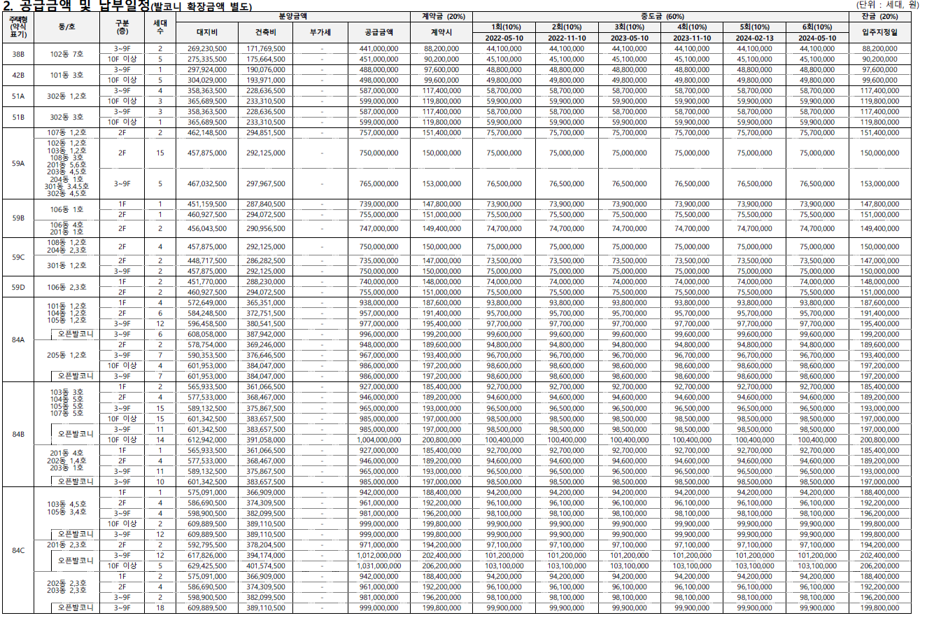 6. 중도금대출 : 9억이하 타입만 40%(자납20%)