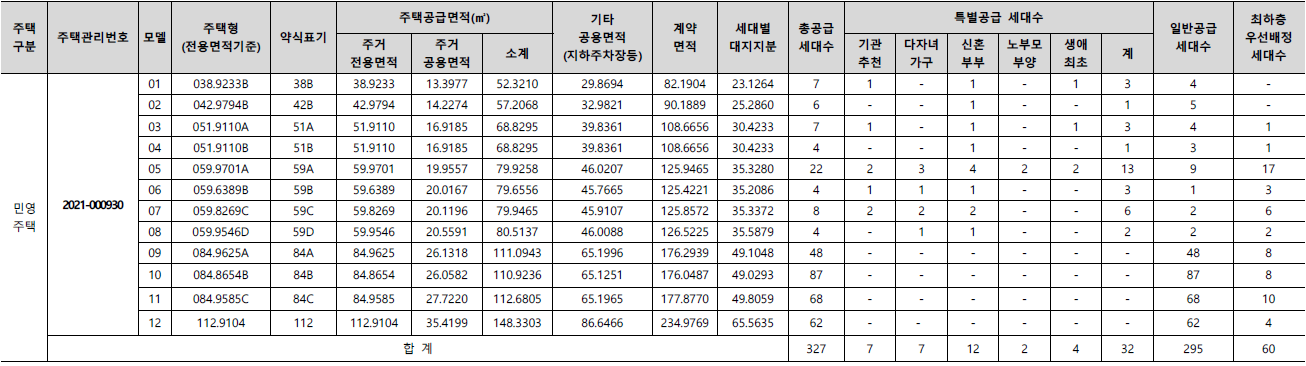 - 공급규모 : 아파트 지하 3층, 지상 8~22층 15개동 총 1,045세대 중 일반분양 327세대